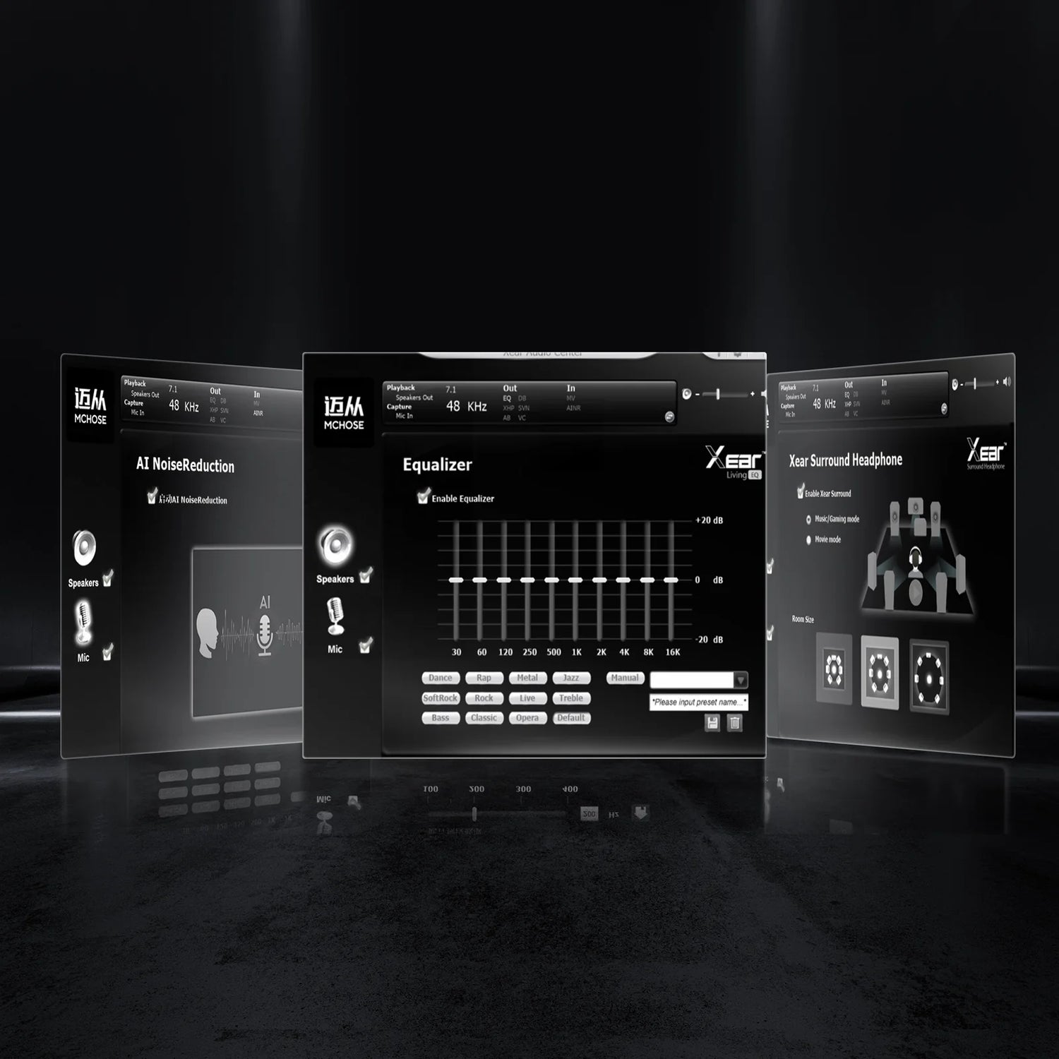 The MCHOSE software allows for accurate control of your headset, featuring customizable equalizer settings. Customize your audio to easily distinguish key sounds and improve your reaction time and positional awareness in the heat of the game.
