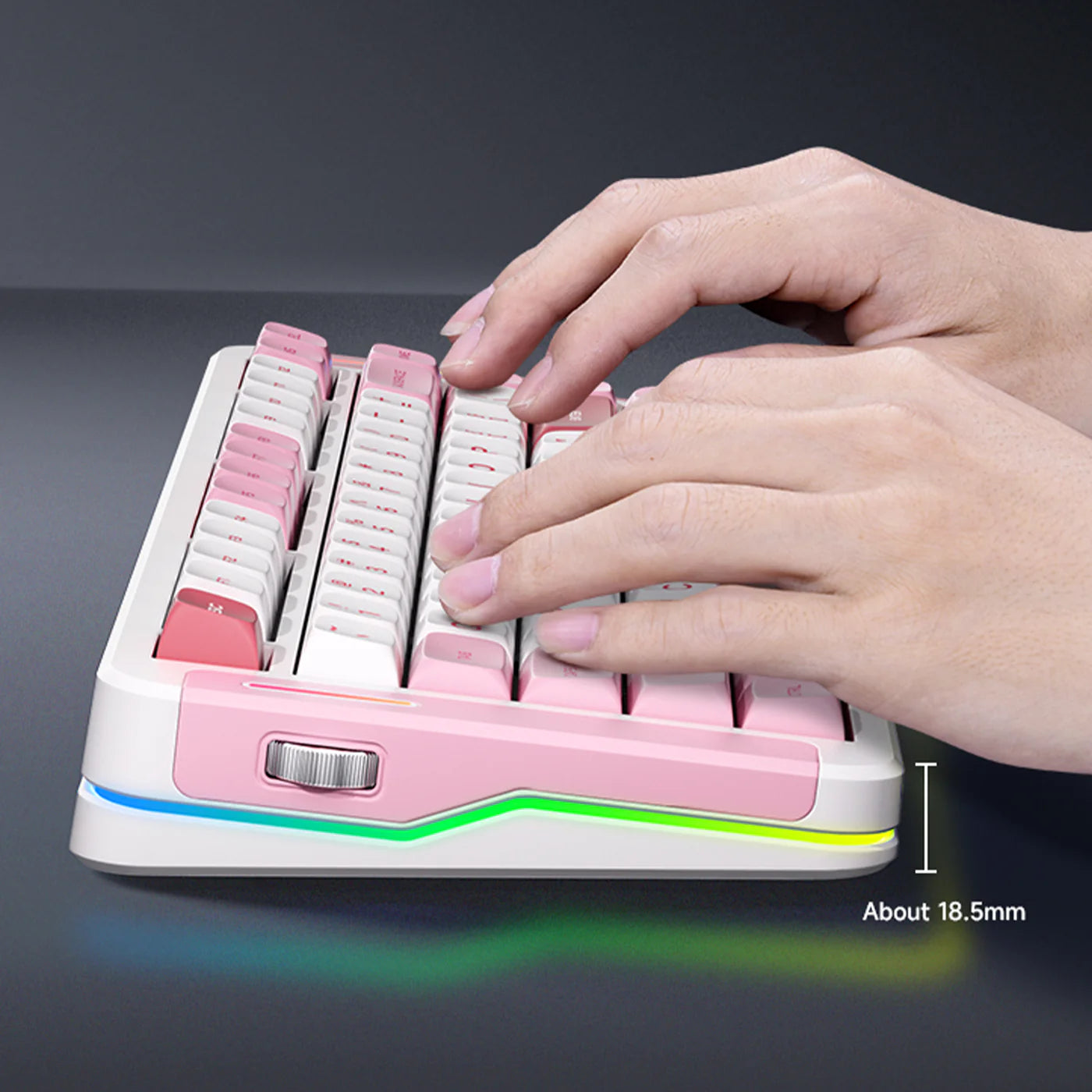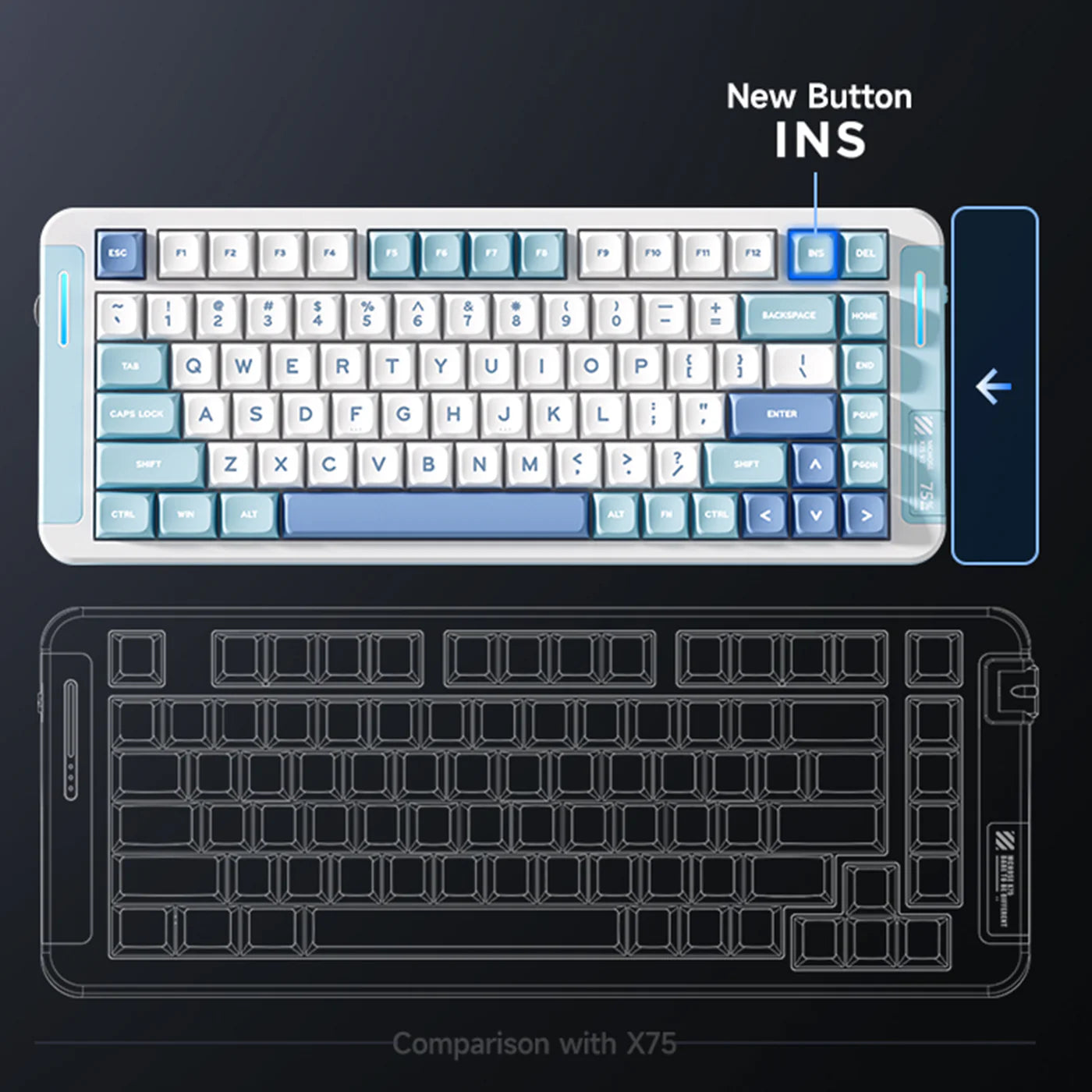 Reduced by 10% in size compared to the V1, featuring a 75% layout with 83 keys. This compact design saves desk space and provides more room for mouse movement, improving overall workspace efficiency.
