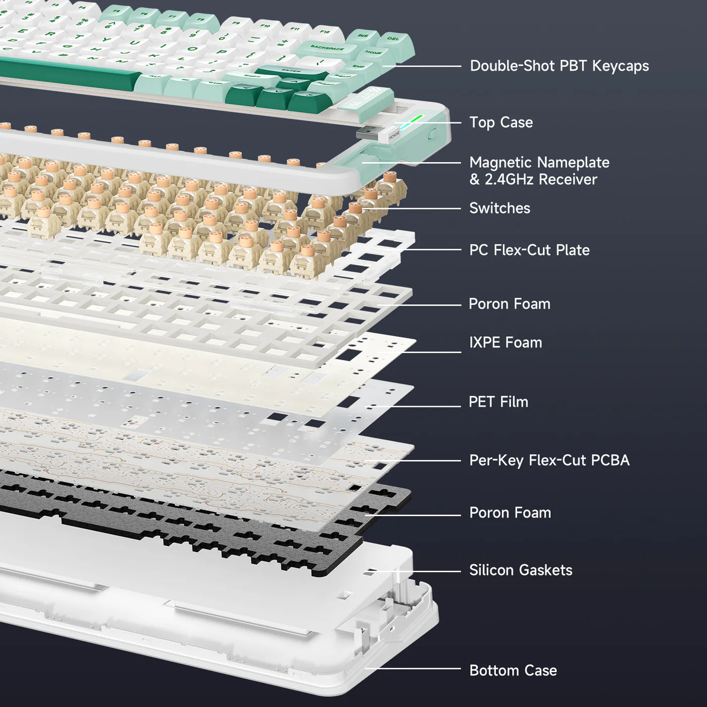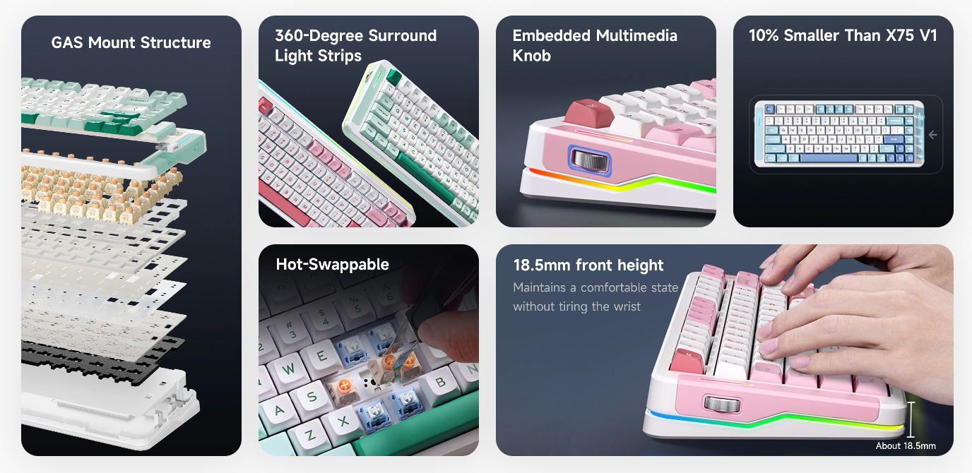 Easily customize your typing experience with the X75 V2’s hot-swappable feature. Quickly swap switches without soldering to customize for your own preferences. Simply pop in new switches and you’re ready to go.