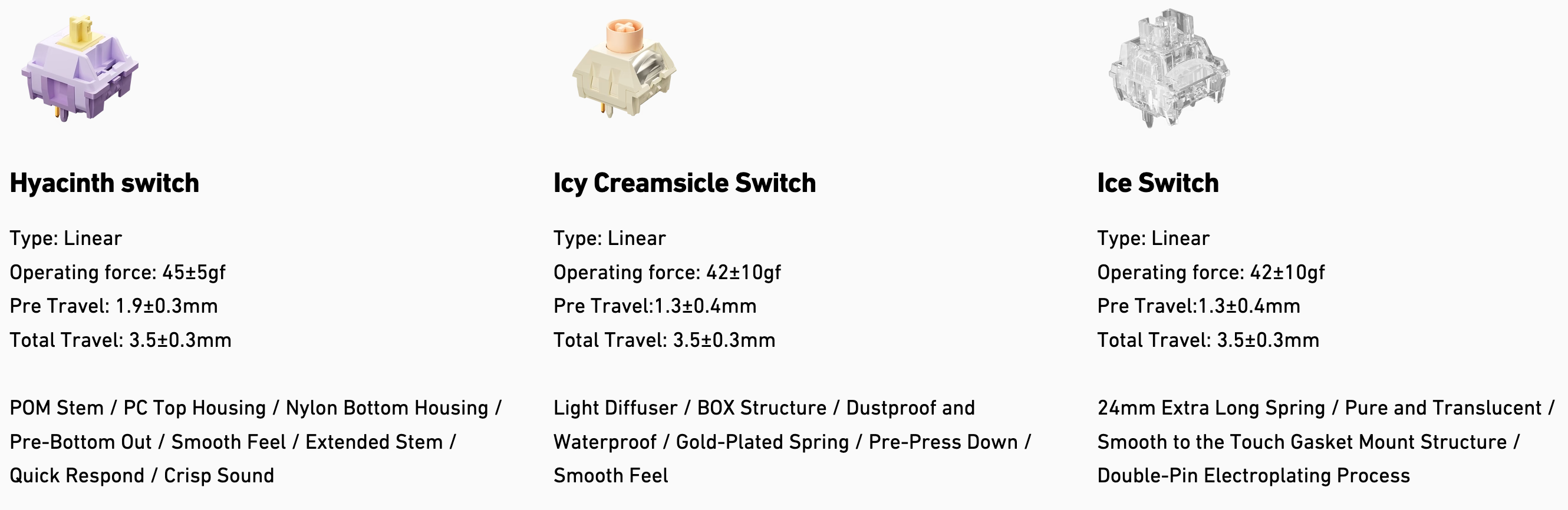 - Switches Options: Hyacinth Switch | Whale Sea Switch | Icy Creamsicle Switch